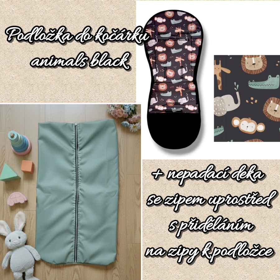 Animals Black podložka s připínací nepadací nepromokavou dekou