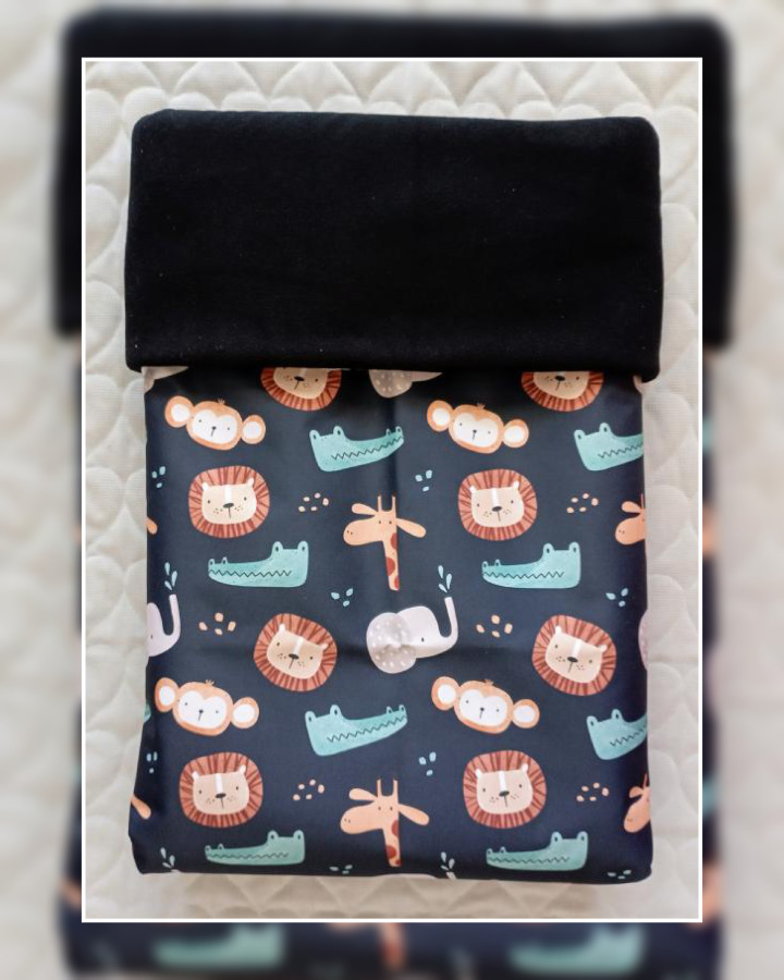 Vrchní materiál kočárkovina s hydrofobní úpravou takže lehký až střední déšť nebo sníh nepropustí, dotyková vrstva fleece antipeeling, který má vynikající termoizolační vlastnosti. U zimní varianty ještě vrstva 250g hypoalergenního vatelínu.