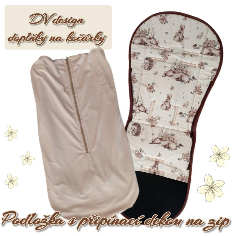 Deka se k podložce připevňuje pomocí zipů po stranách. Uprostřed deky je také zip pro snadnou manipulaci, který využijete při vyndávání dětí ven z kočárku, při přechodu do teplejšího prostředí apod. Nemusíte sundávat celou deku, ale stačí rozepnout. Deka má dole stahování do tvaru nánožníku, pokud potřebujete použít samostatně bez podložky,má deka navíc po stranách šňůrky na přivázání ke kočárku.