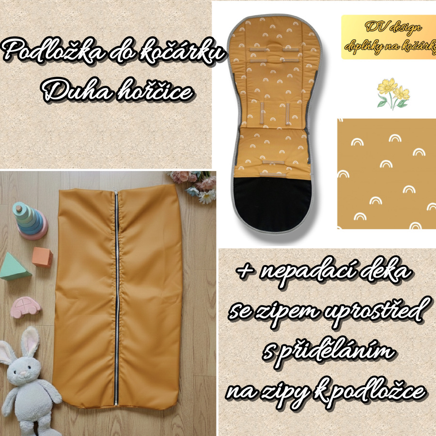 ⭐Pokud byste chtěli k podložce jinou barvu deky, stačí to napsat do poznámky k objednávce ,nebo všechny sady lze objednat i samostatně přes sekci podložky do kočárku a nepadací deky.