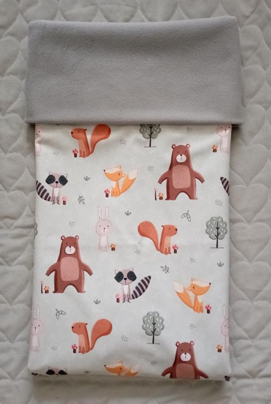 Deka má dvojí přidělání na kočárek, dole stahování do tvaru nánožníku.