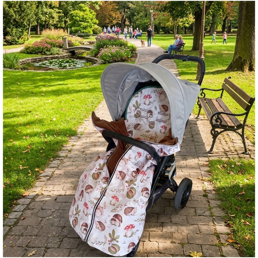Podložka strana s potiskem bavlněná, druhá strana velvet hnědá (podrobné informace a rozměry najdete v sekci podložky do kočárku)
