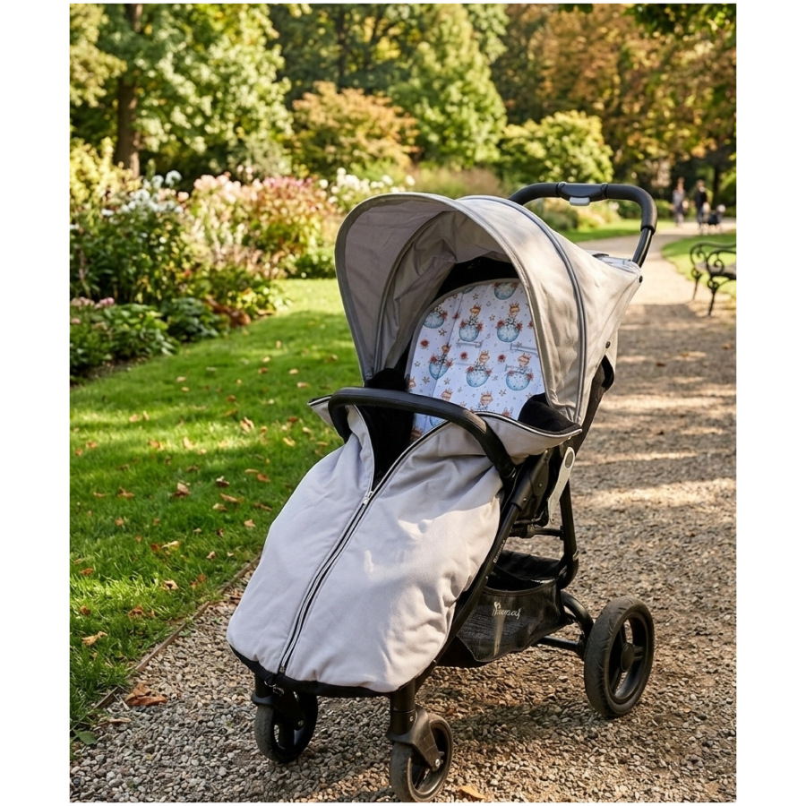 Podložka strana s potiskem bavlněná, druhá strana bavlněná vafle světle modrá (podrobné informace a rozměry najdete v sekci podložky do kočárku)