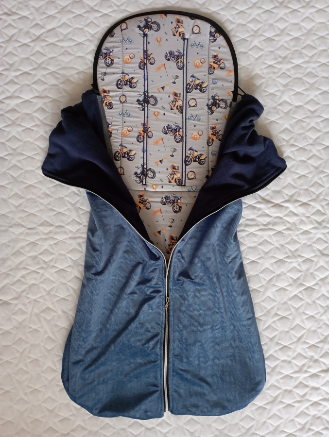 Připínací deka velvet/fleece antipeeling, 100% polyester, zip uprostřed, přidělání k podložce pomocí zipů po stranách+ tkanice na možnost přidělání i samostatně ke kočárku.
