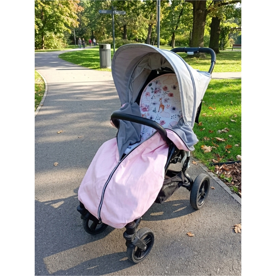 Podložka strana s potiskem bavlněná, druhá strana velvet růžová (podrobné informace a rozměry najdete v sekci podložky do kočárku)