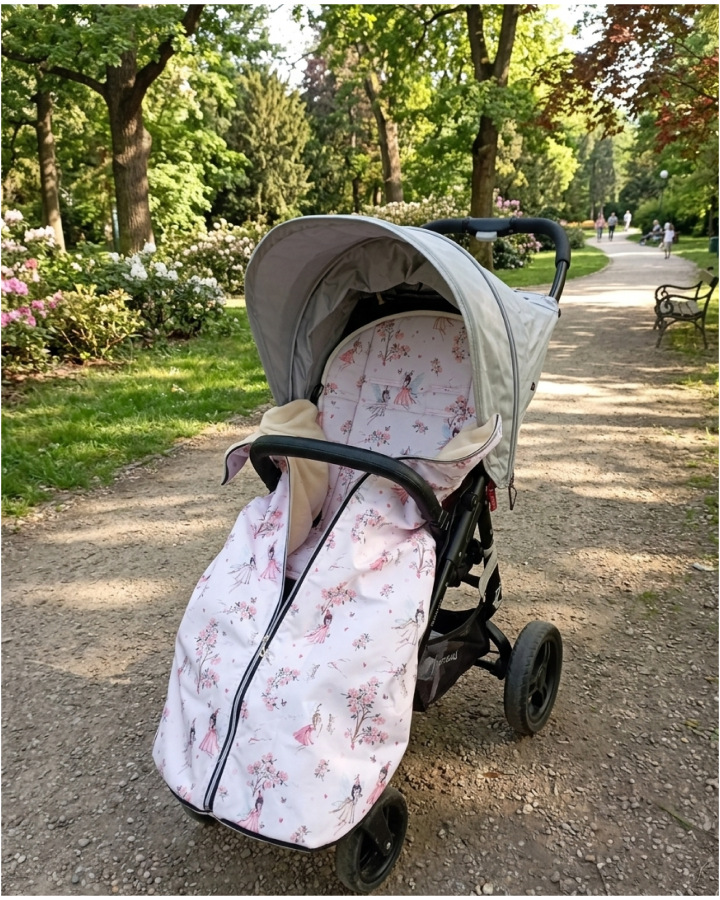 Podložka strana s potiskem bavlněná, druhá strana velvet béžová (podrobné informace a rozměry najdete v sekci podložky do kočárku)